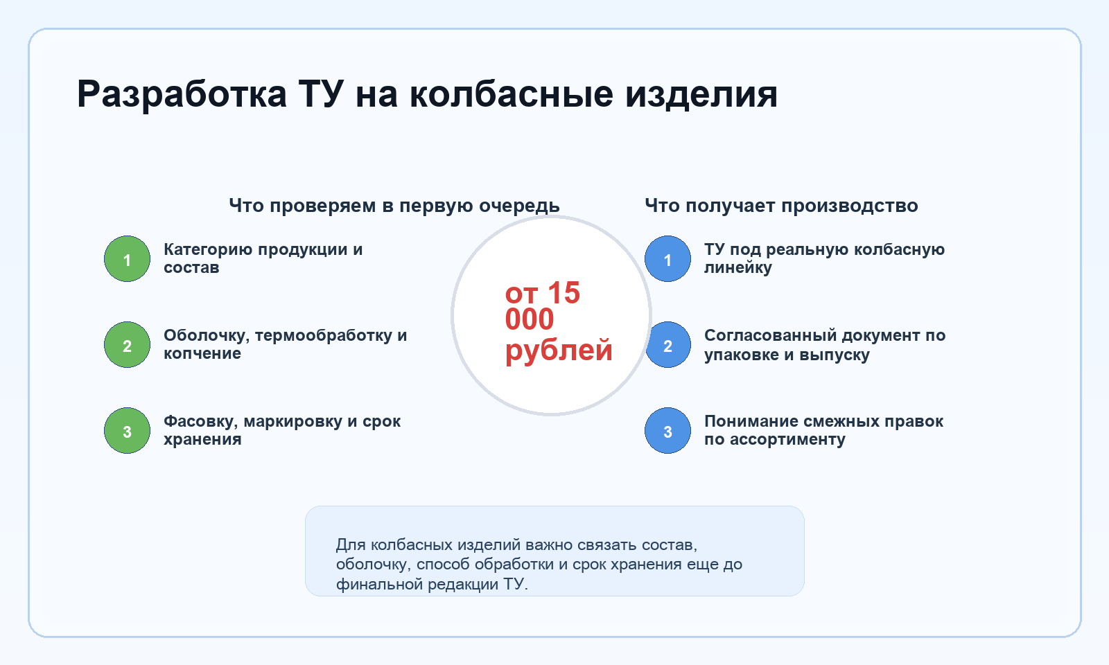 • ТУ под конкретную колбасную линейку, а не под усредненную категорию;
